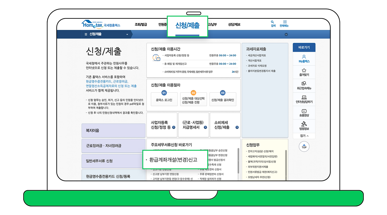 대부분의 국세 환급은 국세청 홈택스를 통해 진행됩니다.